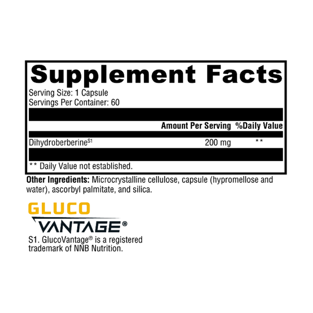 Berberine DHB features dihydroberberine (DHB), a highly bioavailable metabolite of berberine with demonstrated benefits for blood glucose metabolism. Berberine naturally occurs in several plant species used extensively in traditional Ayurvedic and Chinese herbal practices; DHB is the natural bioactive form of berberine.*