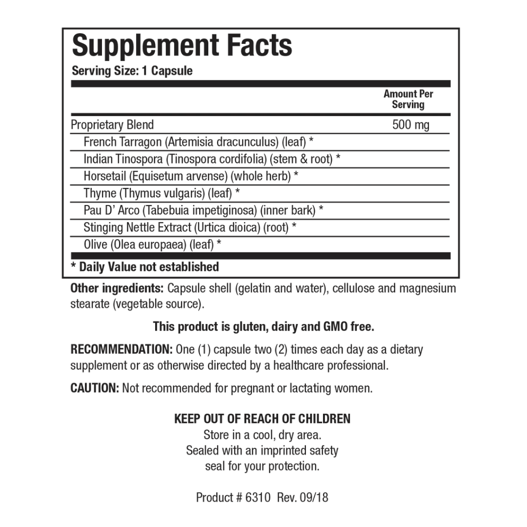 Other Ingredients: Capsule shell (gelatin and water), cellulose and magnesium stearate (vegetable source)